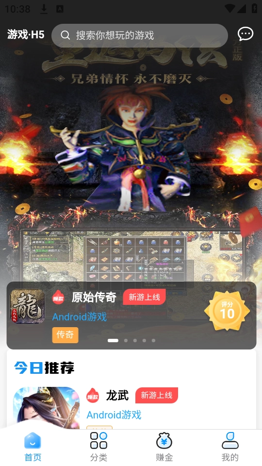 玩家进入首页与“分类”板块后,能获取海量游戏资源,其中包含回合、三国和传奇等类型。