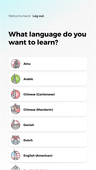 首次打开软件时,你可以挑选自己希望学习的语言,并根据实际情况填写当前的掌握程度。
