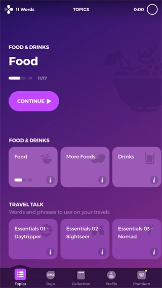 Dojo是借助最优学习方法开展单词练习的训练营,完成一定数量的单词学习后就能解锁。