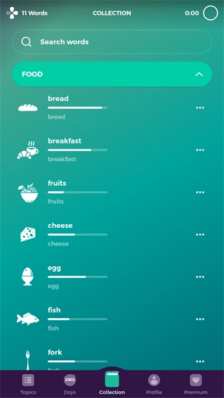 Collection可以查看已学习的单词以及掌握情况。