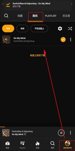 4、接下来进入“我的媒体库”-“离线”栏目下即可查看刚才缓存的音乐了