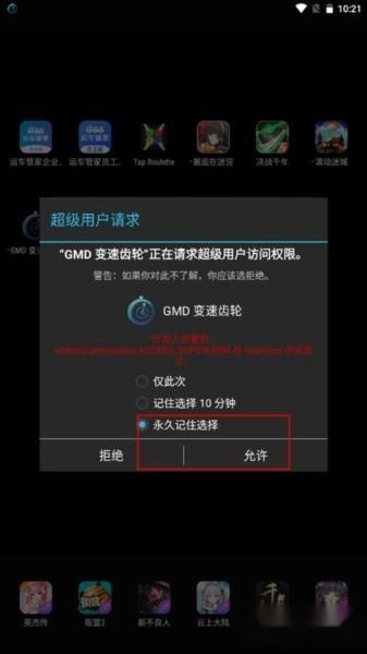 2、这时该应用正在请求超级用户访问权限,你可以根据自身情况勾线以下三种选项,并点击允许。