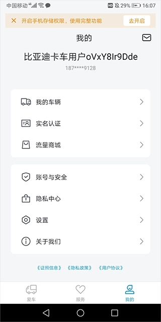 进入比亚迪卡车后进行登录