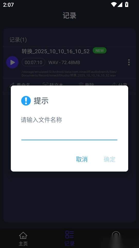 接着进入“记录”文件管理菜单界面,找到“重命名”按钮并点击进入。