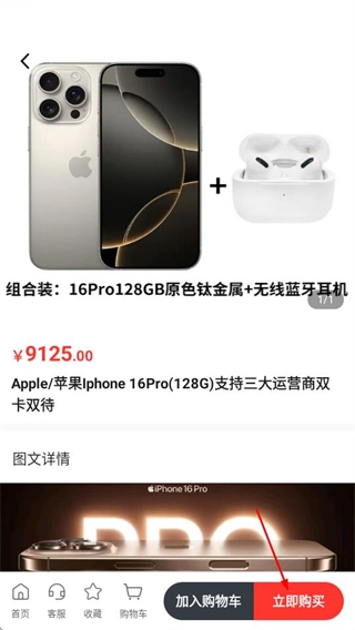 在手机商品列表页面,挑选意向购买的手机商品,随后进入商品详情页面。