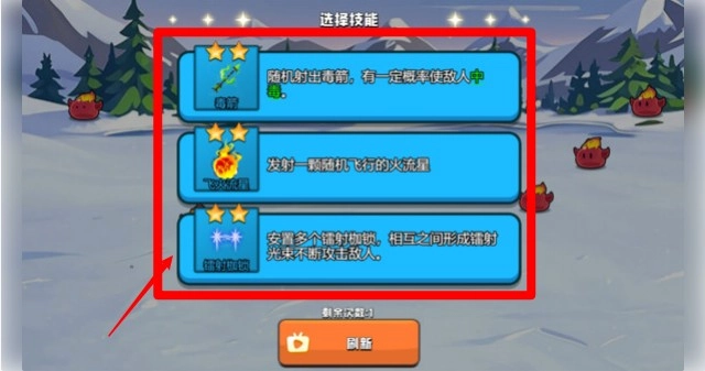 技能升级的方法是:重复选取同一技能就能完成升级,以此扩大攻击范围并增强附加效果。
