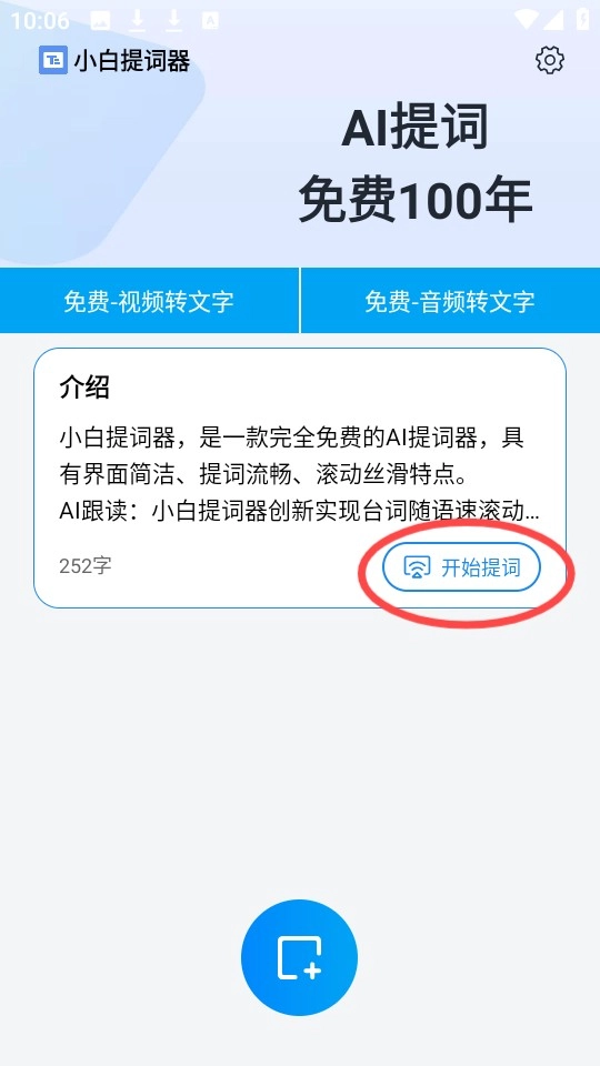 接着点击首页的“开始提词”,如图所示。
