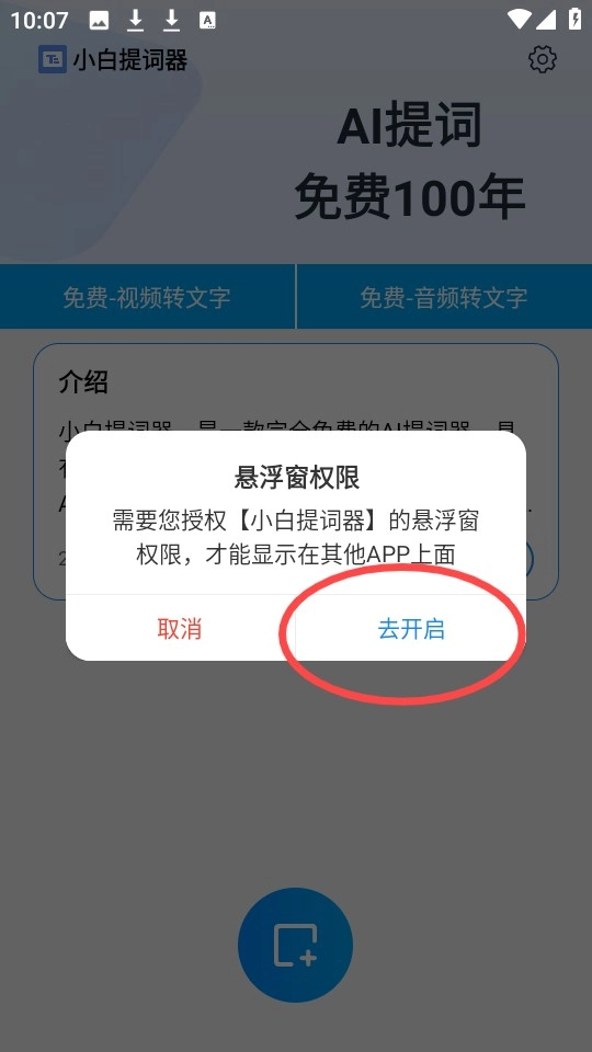 这里以“悬浮提词”为例,在使用它之前,得先开启悬浮窗权限。