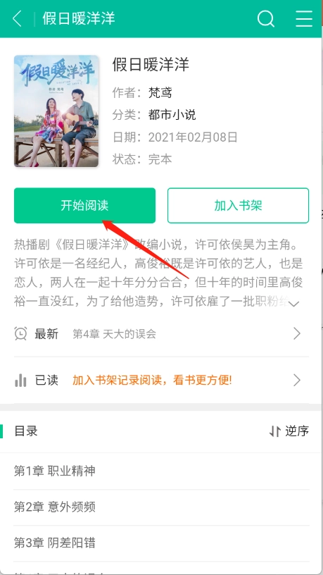 点开想看的小说进入到阅读页面,点击“开始阅读”。