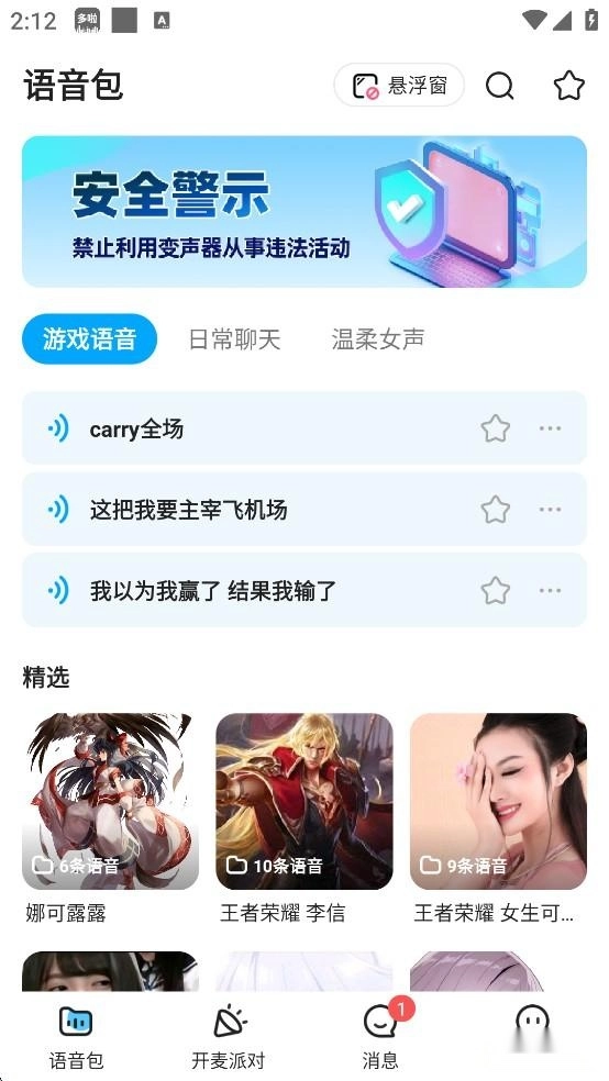 1、功能非常强大,这里汇集了各种类型的语音包,搞笑的、创意的等多种类型的都有提供;