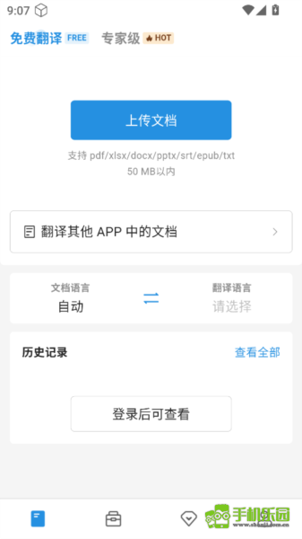 2、首页提供秒免费文档翻译功能,上传文档即可翻译。