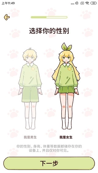 选择你的性别。