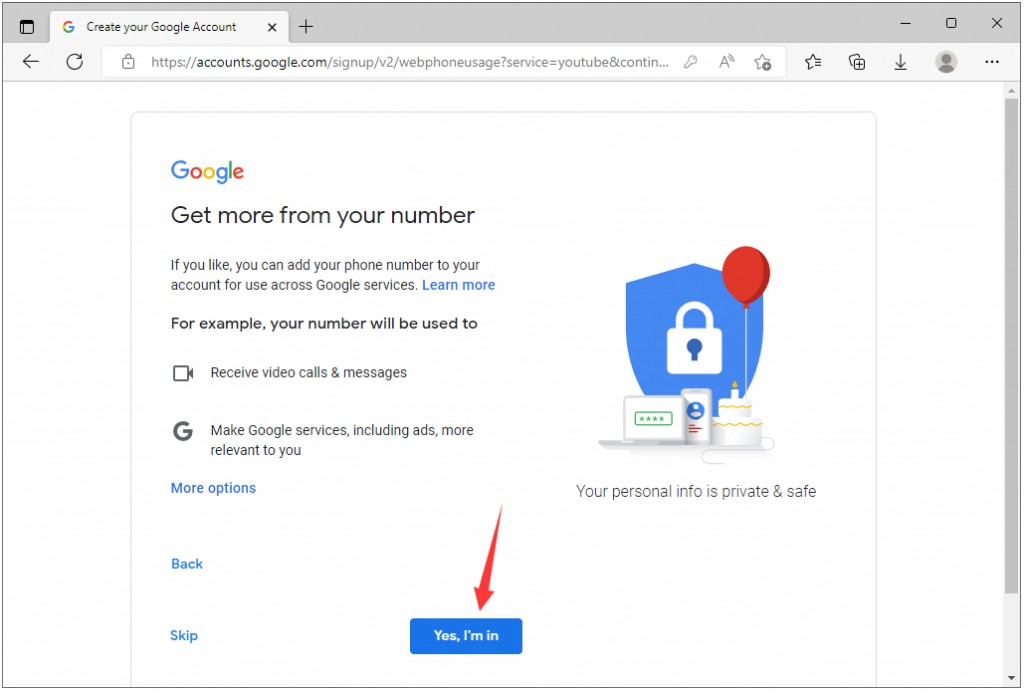 10、该页面主要用于将来可能向您发布一些广告信息,同时将您的手机添加到Google账户中以确保后续的安全。