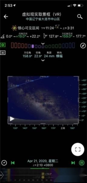 摄影师对相机取景框是非常熟悉的。现在您可以在Planit!里面看到模拟的取景框。这个取景框可以是虚拟现实,增强现实,图片或者街景,然后上面会有星历的覆盖层。