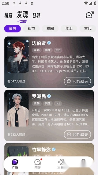 1、打开登录EchoMe 即可与这些ai男友角色进行聊天了