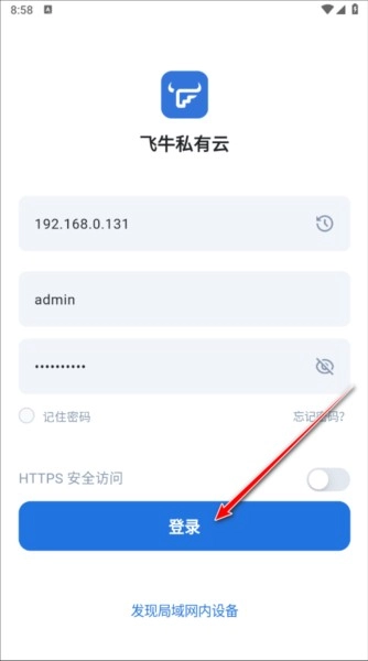 2.输入我们的NAS ip、账号和密码,并点击登录按钮