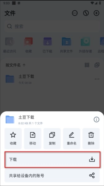 6.同时我们还可以点击旁边的···将文件到我们的手机上