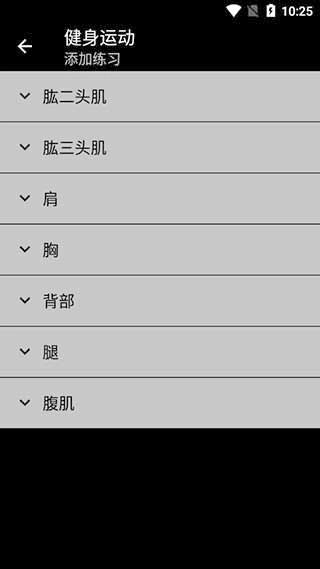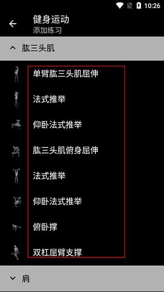 4、根据用户需求设置肱二头肌、肱三头肌、肩、胸、背部等运动。