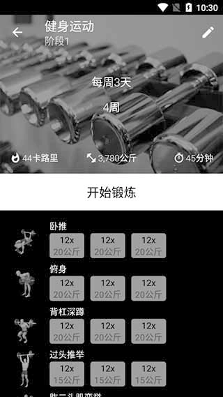 3.数据跟踪与保存:用户可以保存和跟踪自己执行的锻炼的体重和重复次数,以便更好地了解自己的健身进展。
