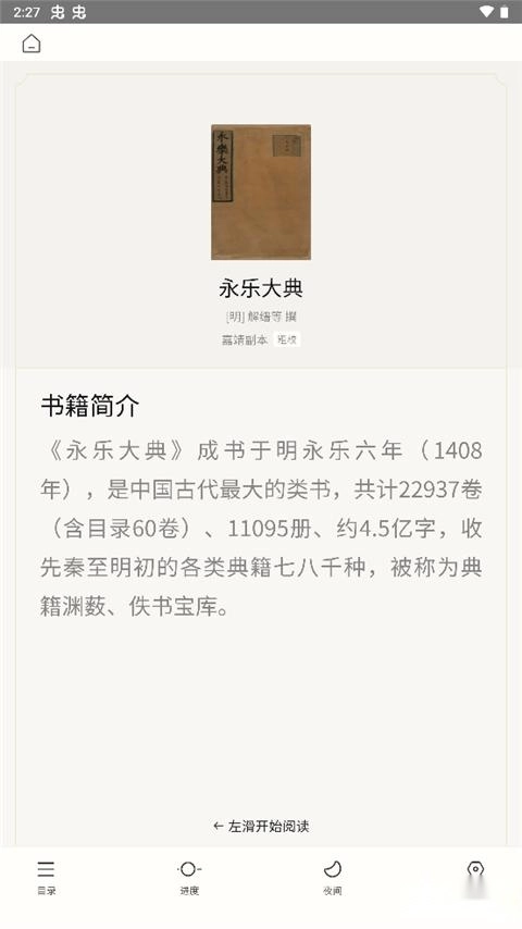 4、进入书籍页面后,我们可以通过点击左下角的目录选择自己想要看的章节;