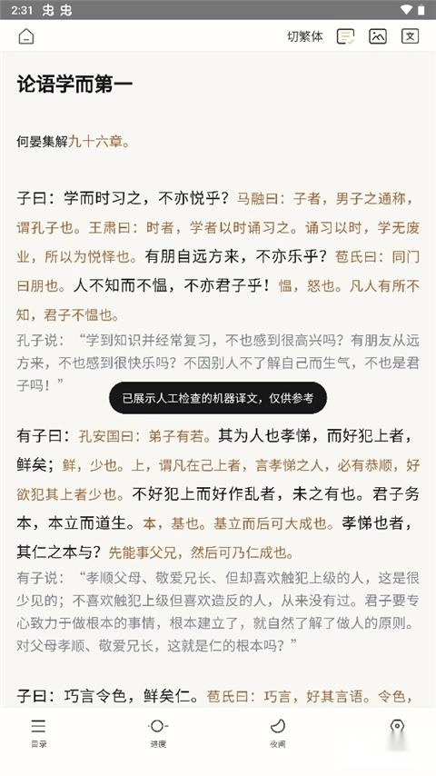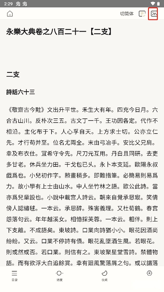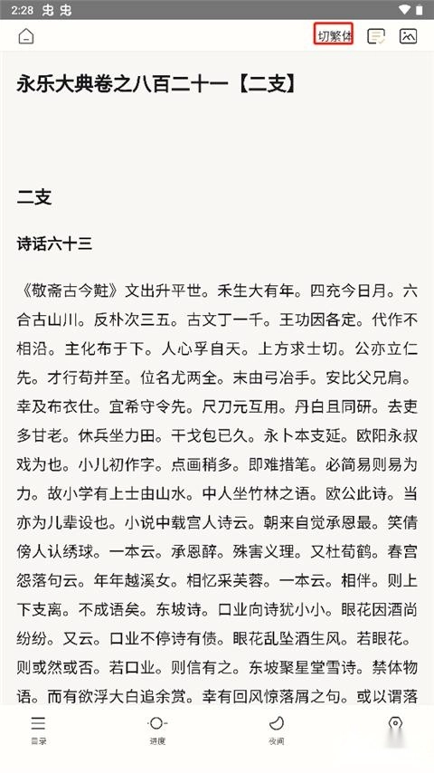 5、轻点屏幕,唤出功能栏,其中支持繁体阅读模式,点击对应选项即可切换为繁体显示。