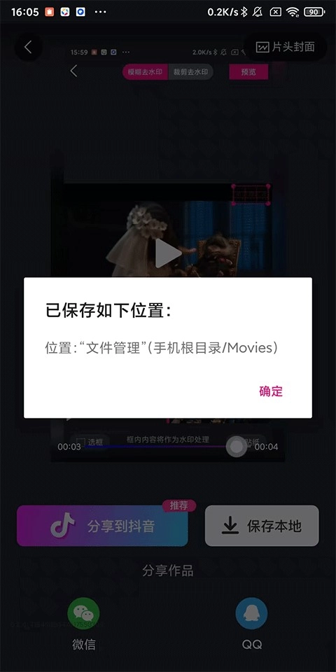 从本地选取需要去除水印的视频素材,裁剪完毕后点击右上角的【✓】按钮,即可完成导入操作。