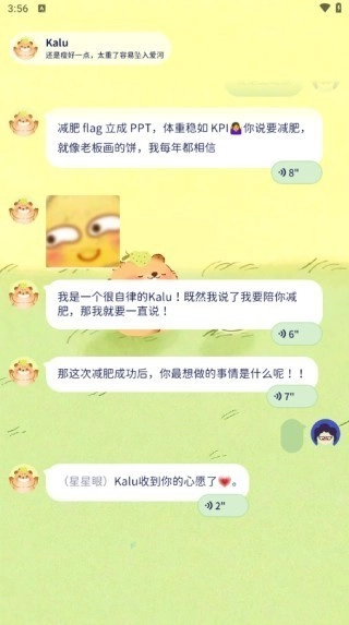 软件提供了智能聊天记热量的方式,通过和对方的聊天互动来轻松记录食物热量的摄入。