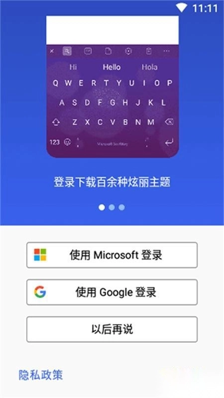 1. 下载应用后启动引导页,点击"启用微软输入法"按钮