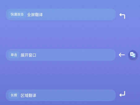 触屏手势:双击悬浮窗全屏翻译,滑动调整蒙层透明度。