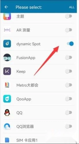 3、第三步:进入第一行我们需要先找到【dynamicSpot】,然后开启后面的开关。