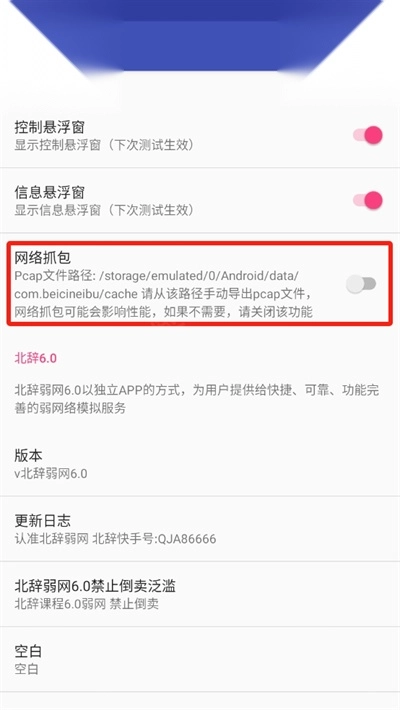 4、非必要情况不建议开启网络抓包功能