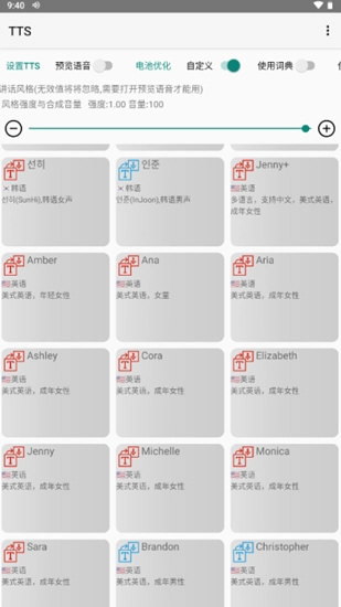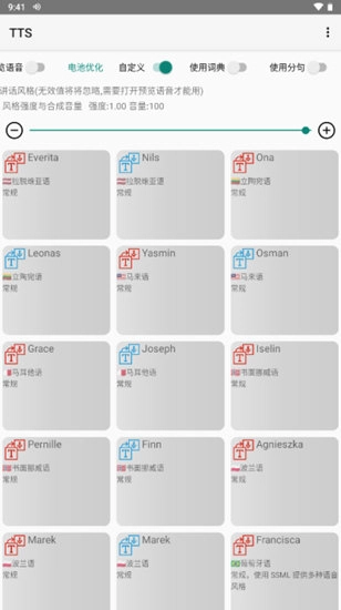 TTS语音引擎在移动端表现稳定,触屏操作响应灵敏。语音合成质量高,但某些语言如俄语发音略显机械。界面简洁,功能分类清晰,适合视力不佳用户。小说库资源丰富,朗读队列实用。缺点:高级语音包需手动下载,方言支持偶尔不连贯。用户评分:功能4.2分,界面3.3分,推荐度4.2分。