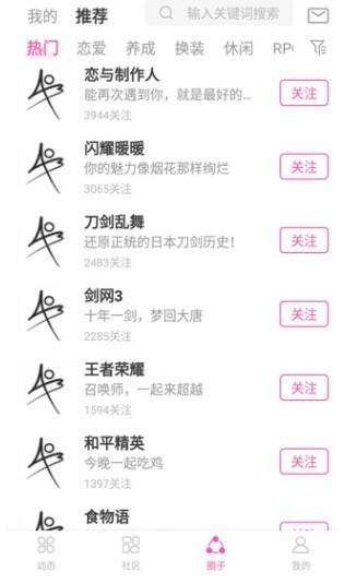 4、点击“圈子”板块,这里汇聚了王者荣耀、和平精英、闪耀暖暖等当下热门游戏的专属圈子,用户能够选择关注感兴趣的游戏圈,与其他同好玩家一同交流互动。