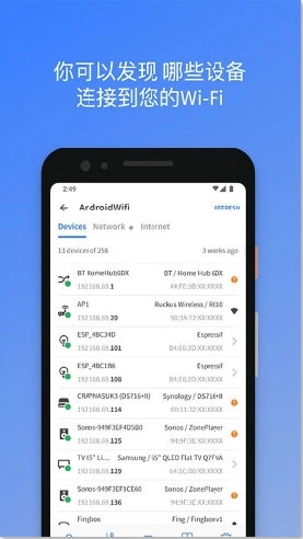 Fing网络扫描仪由FingLimited开发,是一款专注于网络安全的实用工具。该应用通过高效扫描技术,识别连接设备,包括手机、电脑、路由器等,支持NetBIOS、UPnP、SNMP和Bonjour协议分析。用户可实时监控网络状态,检测入侵设备,防止未授权访问。内置的网速测试功能测量下载、上传速度和延迟,帮助优化网络性能。家长控制选项允许管理屏幕时间和互联网访问,而自动化报告简化网络维护。部分高级功能需要订阅,界面对新用户可能稍显复杂。软件适配Android和iOS设备,操作简单,适合日常网络管理。