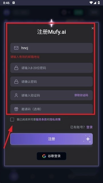 2、输入邮箱和密码点击登录,还可以使用谷歌账号登录;