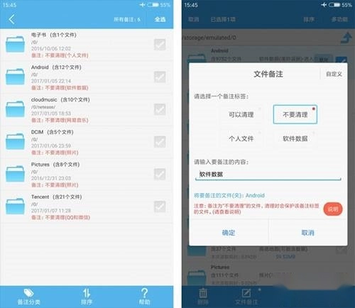 这里特别说明一下,Tencent其实就是腾讯系的软件产生的文件夹都在这,往往都是手机上最大的文件夹,动辄几个G都有可能,是需要清理的大户,楼主备注为“不要清理”只是为了避免不小心删除了聊天记录里的照片和语音等