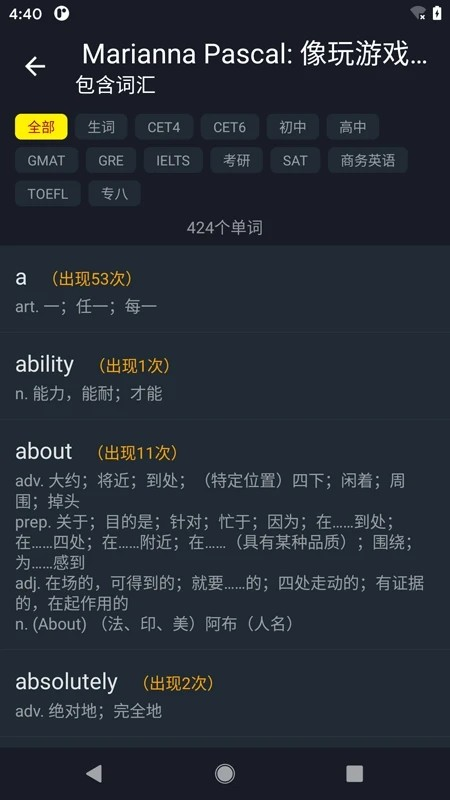 对于视频中的字幕内容会拥有详细的中文释义,以此来让你更好的掌握每一个单词