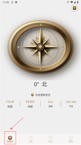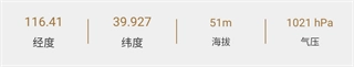 【指南针】支持方向、海拔、气压、经纬度、地理位置的显示。
