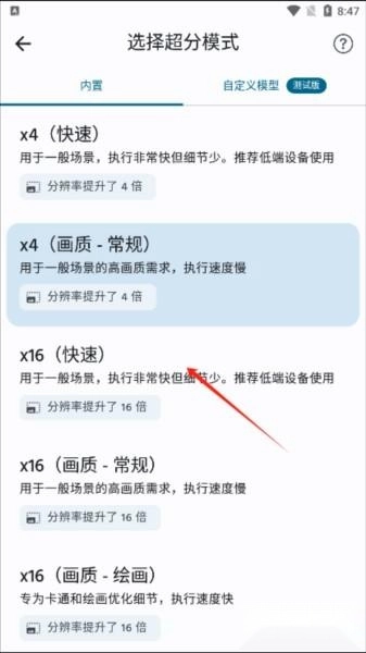3.你可以x4(快速)、x4(画质-常规)、x16(快速)、x16(画质-常规)、x16(画质-绘画)中自由切换。