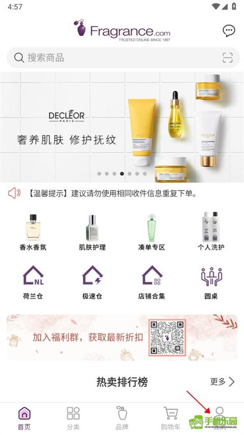 1、打开fragrancenet,在选购完商品后,点击页面右下角的“我的”按钮;
