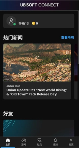 1、安装UbisoftConnect,登录账号后,点击右下“档案”选项