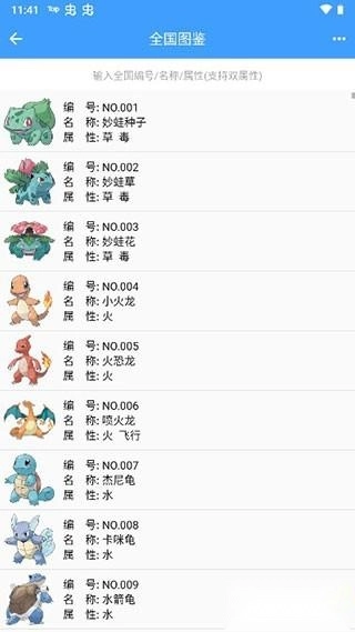 全国图鉴:包含宝可梦的基本信息,但是进化链和招式还在优化中;