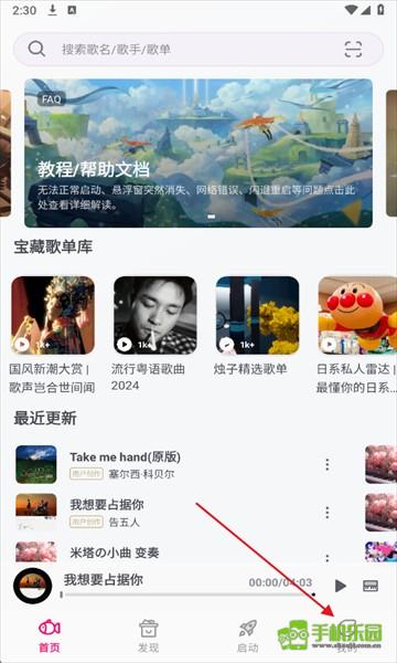 在曲库、最近播放、我的收藏、推荐音乐列表中选择音乐演奏。