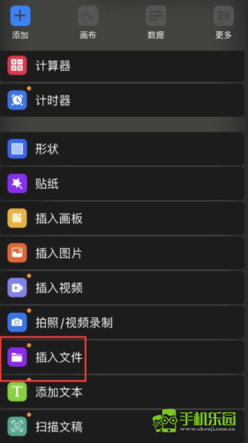 4、在添加中找到 插入文件 ,即可选择word文档导入