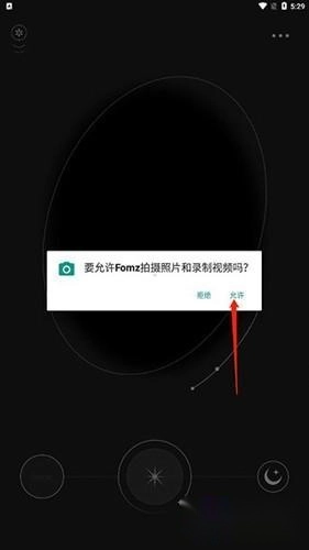 1、打开fomz复古胶片相机应用,在弹出的权限请求中点击允许拍摄照片和录制视频,即可开始拍摄。