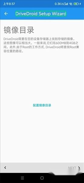 接下来要进行镜像目录的选择操作:点击“配置镜像目录”按钮后,系统会弹出申请存储权限的对话框,此时点击“允许”;接着选择你希望程序使用的文件夹,点击“使用此文件夹”按钮,并在随后弹出的对话框中再次选择“允许”;待程序加载完成,点击“next”按钮即可继续下一步。