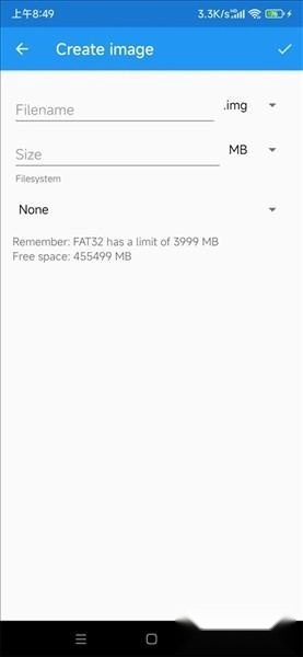 打开新建映像的界面,在第一个编辑框中填写你想要创建的映像名称,第二个编辑框则输入计划为该映像分配的预留空间——这部分空间需要参考你准备制作的系统写入后的实际大小来确定,比如若要制作Windows10系统的启动U盘,建议将空间设置为8GB。待预留空间输入完成后,点击“create”按钮,程序便会开始创建映像。