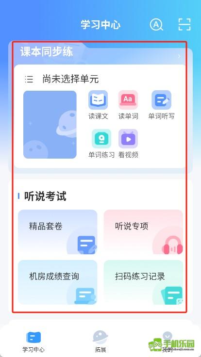 3、登录后可以在首页选择适合自己的学习板块,如同步教材练习、听说模拟考试等。