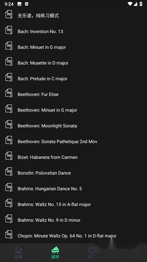 2、进入钢琴页面,里面支持丰富的乐谱练习