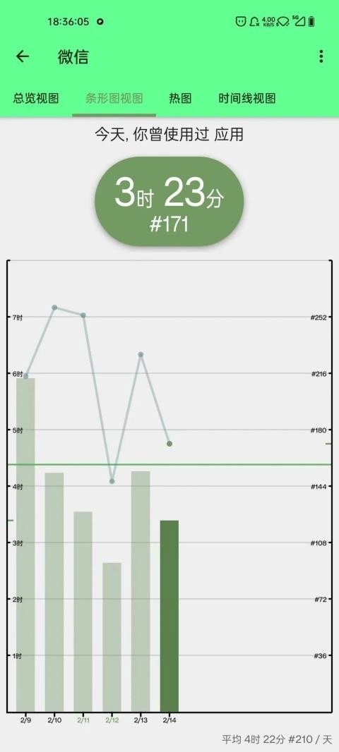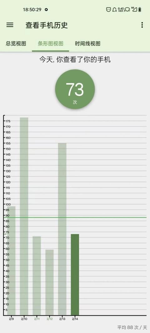 该功能可以以条形图或日历视图的方式显示你每天查看手机的次数。